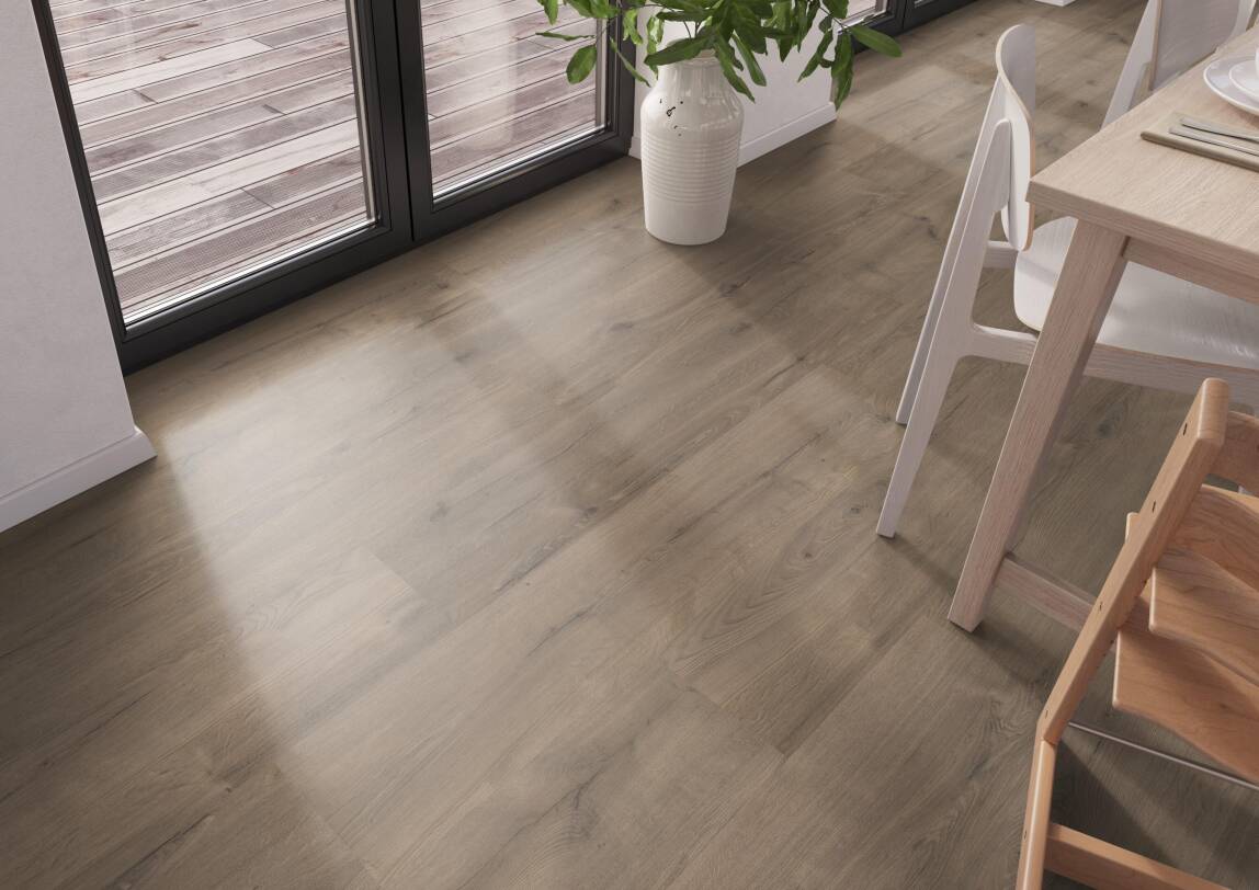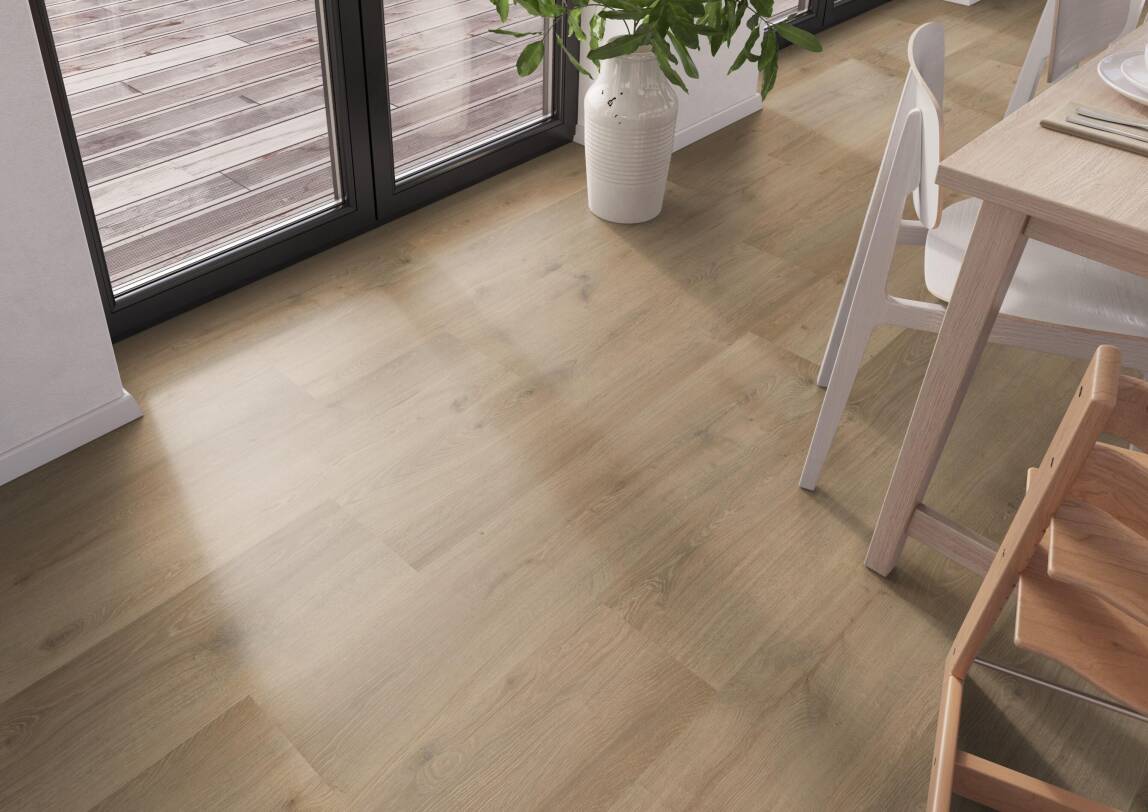 De vier kleuren van de Sara bieden een natuurlijk uitstraling, die perfect pas in een moderne of industriële inrichting. De Stine komt met een breder kleurenpalet van maar liefst zes kleuren en geeft elke ruimte een elegante, verfijnde uitstraling. Beide kwaliteiten hebben een brede plank van 24,2 cm, wat bijdraagt aan een luxueuze en ruimtelijke sfeer in de kamer. Dankzij de natuurgetrouwe structuur zijn deze vloeren nauwelijks te onderscheiden van een echte houten vloer, wat zorgt voor een authentieke en hoogwaardige uitstraling. Daarnaast hebben beide kwaliteiten het geliefde Unilin clicksysteem.