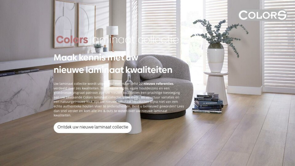 Uw laminaat collectie wordt uitgebreid met maar liefst 22 nieuwe referenties, verdeeld over zes kwaliteiten. Met diverse lichte, egale houtdessins en een gloednieuw visgraat patroon zijn uw nieuwe kwaliteiten een prachtige toevoeging aan uw bestaande Colors laminaat collectie. Door kleur- en structuur variaties en een natuurgetrouwe look zijn uw nieuwe laminaat kwaliteiten bijna niet van een echte authentieke houten vloer te onderscheiden. Bent u benieuwd geworden? Lees dan snel verder en kom alle ins & outs te weten over uw nieuwe laminaat kwaliteiten.