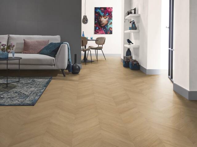 Naast de bekende kwaliteiten Pablo collection en Pablo visgraat collection, breiden wij de collectie uit met een Hongaarse punt. Deze nieuwe kwaliteit heeft een afmeting van 53,8 cm x 11,6 cm en heeft net als de rechte plank en visgraat een natuurgetrouwe structuur en een extra matte toplaag!